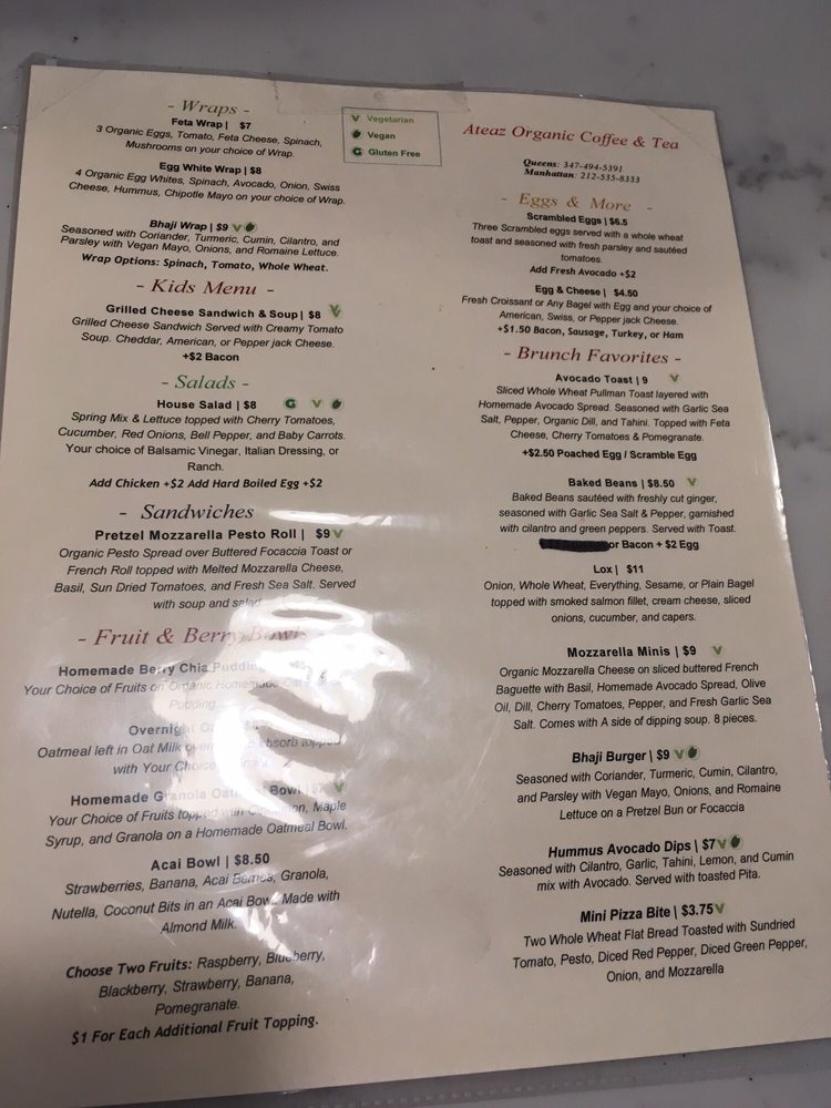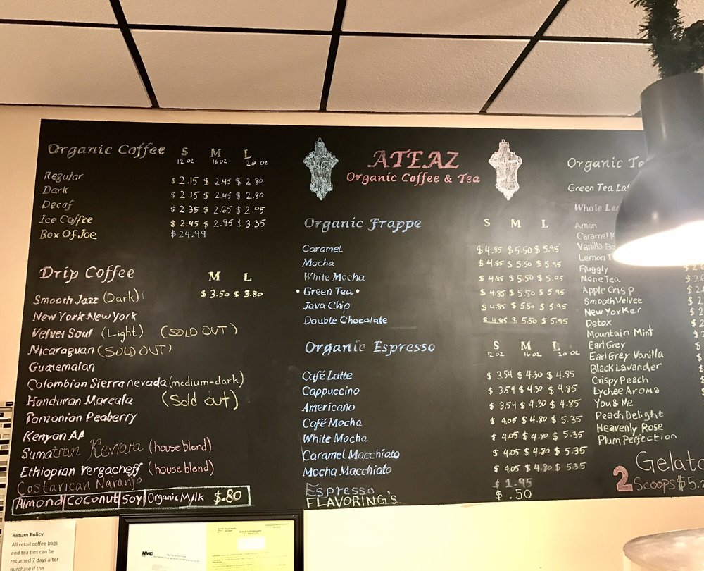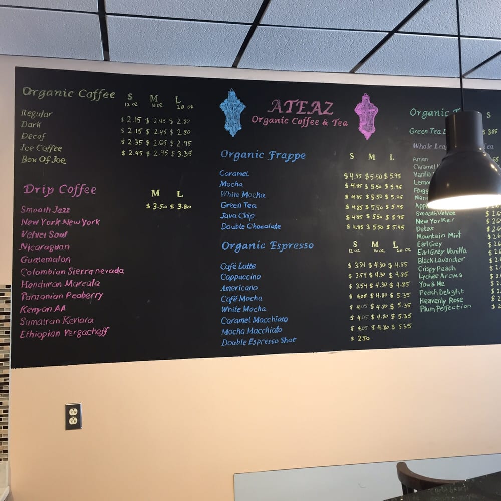 Ateaz Organic Coffee & Tea Menu (Update 2025)